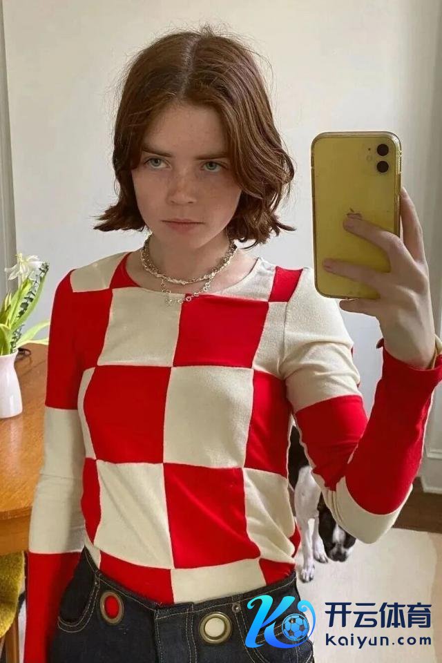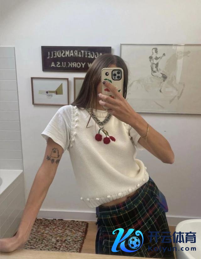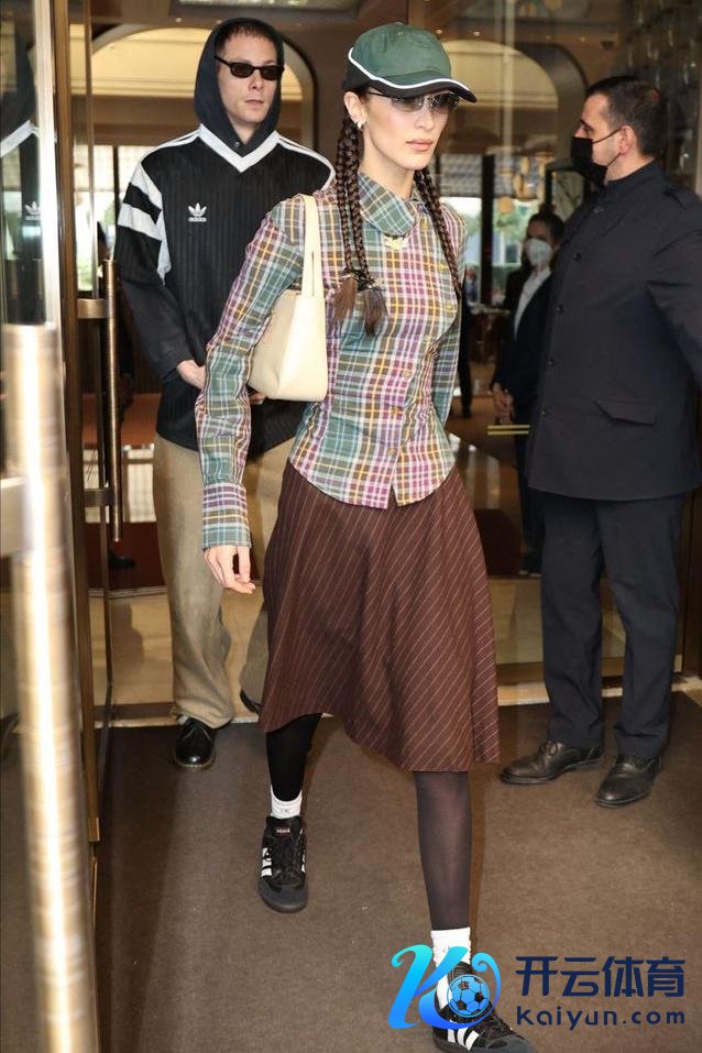 "复旧穿搭大户"贝拉以致从夏末就运转穿格纹了,从这套"番茄女孩look"依然初现端倪。