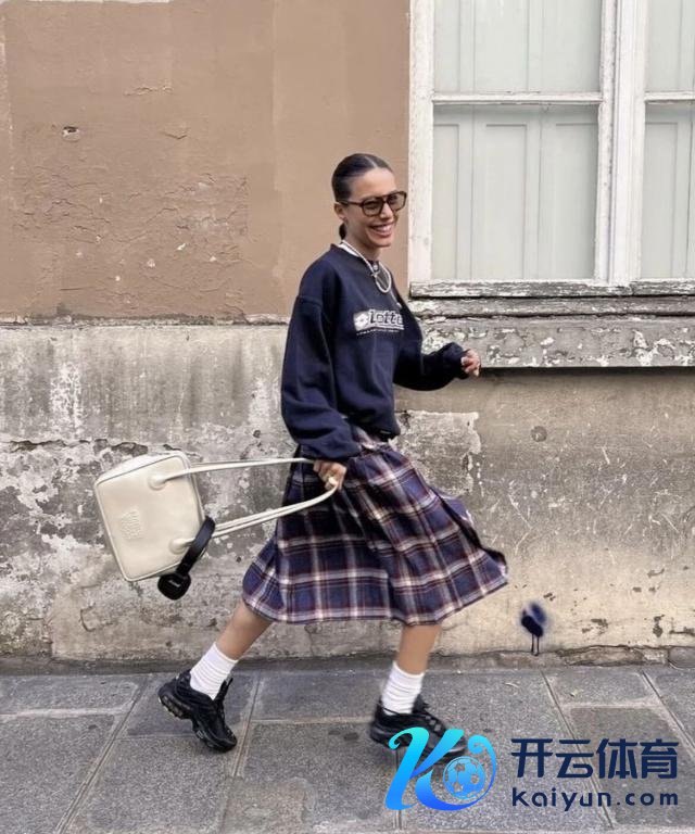 天生带着"学院感",长款百褶裙适应学院复旧道路,短款就带点校园反水,但若是你刻意用一些"反差感"的单品去混搭,比如清楚鞋、机能外衣或棒球帽,它坐窝就会变得年青、以致有点一又克。