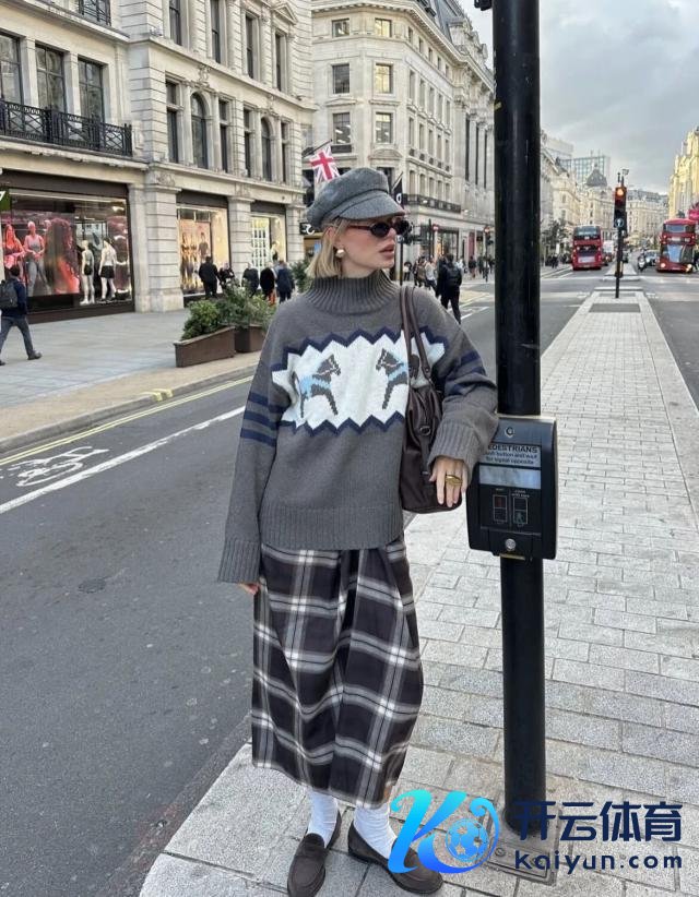 比如外衣的领口、袖口、在毛衣下叠搭一件格纹衬衫,下摆轻轻探出来的那极少图案,就能让全身有了端倪!