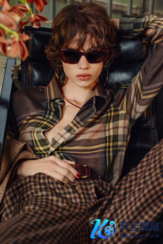 在版型上采选比如宽肩、廓形和boyfirend风这些带有"线条遏抑"的单品,能让格纹的"功令"酿成"力量",而不是让穿着的结构被格纹图案"吃"掉。