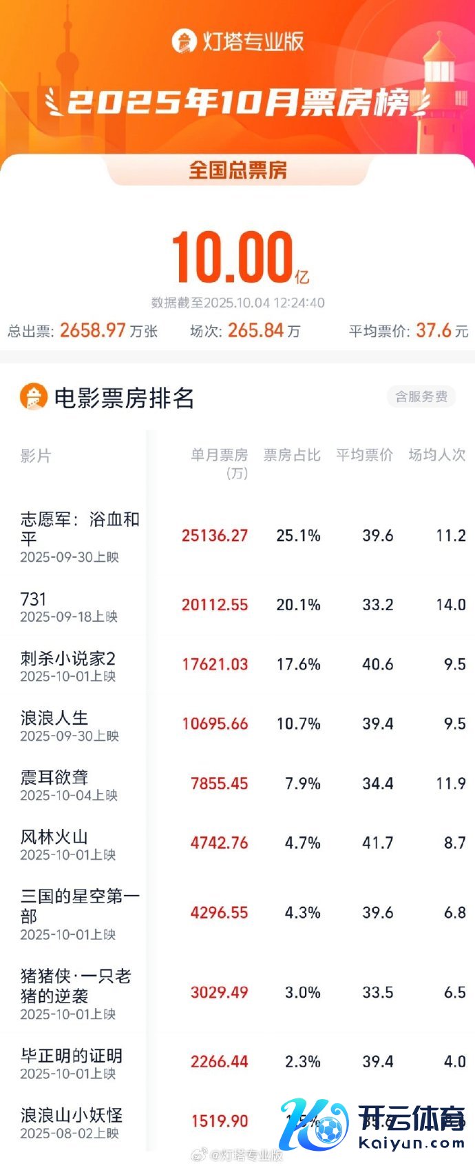 2025年10月票房破10亿体育游戏app平台2025年10月票房破10亿