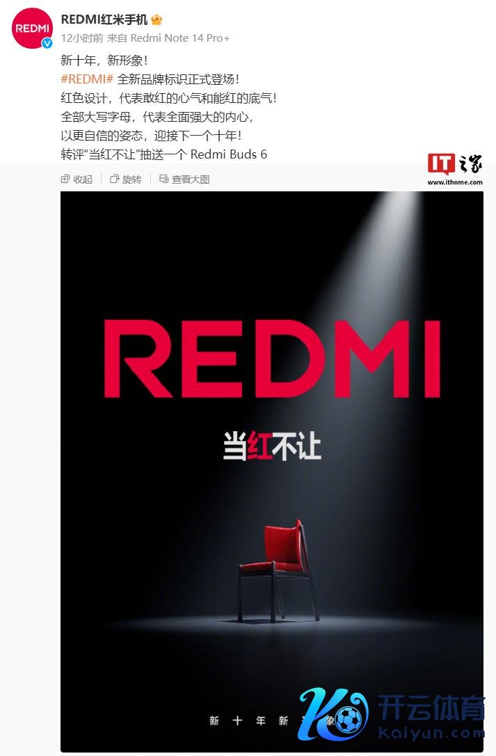IT之家 11 月 21 日音讯, REDMI 全新品牌标志本日认真登场。新标志选拔红色绸缪,代表敢红的心气和能红的底气,沿途大写字母,代表全面苍劲的内心。