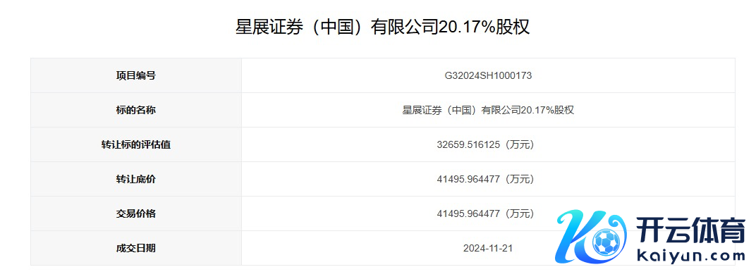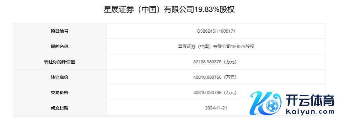 上海集结产权来去所官网表露夸耀,星展证券两笔股权转让名目已于11月21日成交,转让比例总共为40%,总共来去价钱即转让底价8.23亿元。