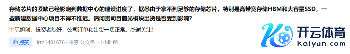 中际旭创:公司订单和出货一切同样中际旭创:公司订单和出货一切同样