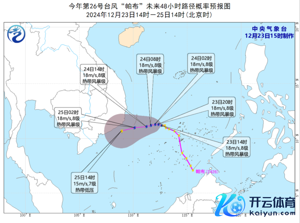 在23日14时,本年第26号台风“帕布”生成,强度为热带风暴级,位于距离南沙永暑礁北偏西主张约180公里的海上。