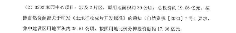 触及2片区,原用大地积约39公顷,总投资约19.06亿元,按照当然资源部对于印发《地盘征得益片斥地圭表》的见告(当然资规[2023]7号)条件,汇集缔造区用大地积约35.51公顷,按照用地比例分担投资额约17.36亿元;