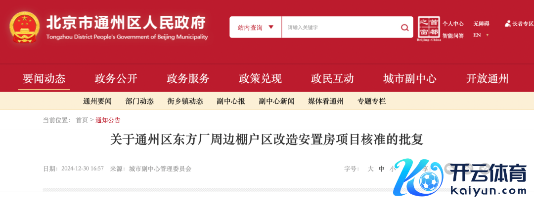 记者了解到,近日,通州区东谈主民政府官网发布了《对于通州区东方厂摆布棚户区校阅安置房技俩核准的批复》。批复显现,安置房技俩位于北京城市副中心02组团02街区,占地贪图总用大地积约28.84公顷。总投资估算为1111784万元,所需资金沿途由北京城市副中心投资缔造集团有限公司筹措处置。