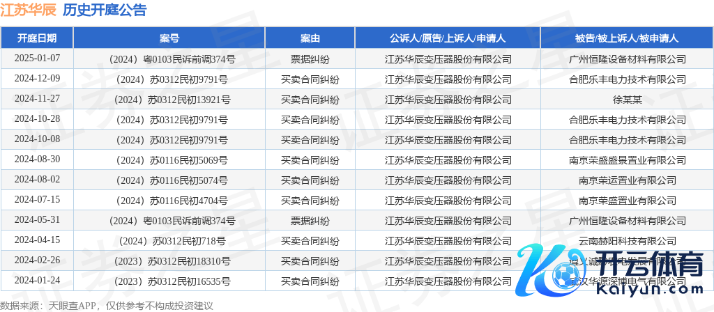 本站音讯,凭据天眼查APP泄露,近日公布了一则江苏华辰变压器股份有限公司当作原告/上诉东说念主的开庭公告开云体育(中国)官方网站,真贵本色如下:
