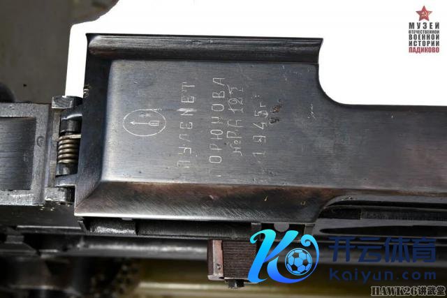 展示了该博物馆保藏的一挺 SG-43 中型机枪,口径 7.62 × 54mm。这挺机枪由兹拉托乌斯特第 385 机器制造厂 1945 年坐蓐,从外不雅上看有较显著的使用陈迹。