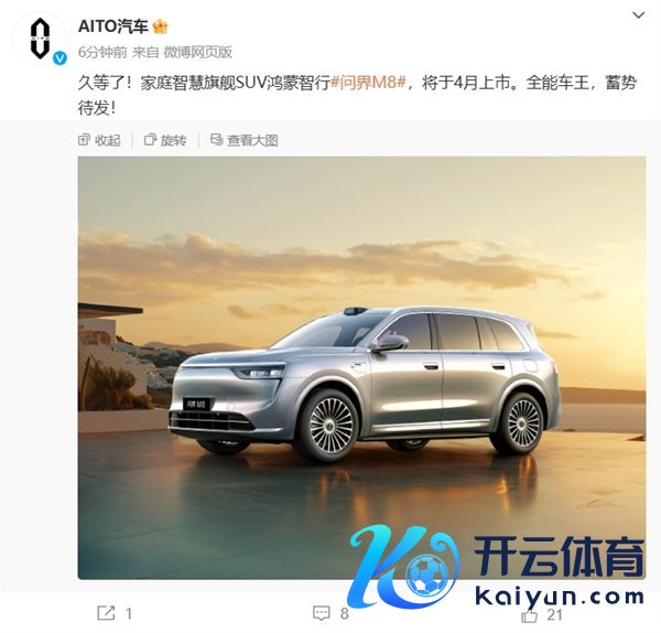 快科技3月5日音讯,当天AITO汽车认真文牍,问界M8将于4月上市,堪称“万能车王”。同期,新车的首张官图也一同公布。